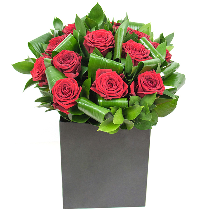 Celebrate elegance with our beautifully unique bouquet featuring rich red roses, lush aspidistra leaves, and charming ruscus. Each blossom is carefully selected to ensure top-notch freshness and lasting beauty, perfect for enhancing any interior.