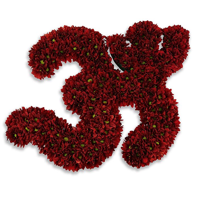 - Included Flowers: Red (crimson) chrysanthemums